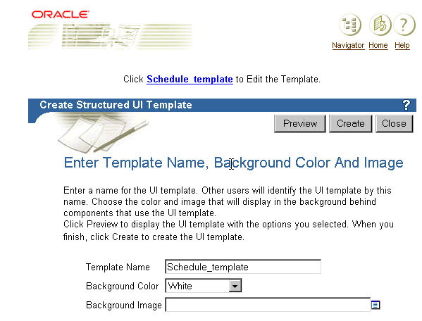 When you build a structured UI template, you fill in an Oracle Portal wizard. You cannot use your own HTML code to extend the template beyond the pre-identified attributes. To achieve greater flexibility, you may want to see Building an unstructured UI template