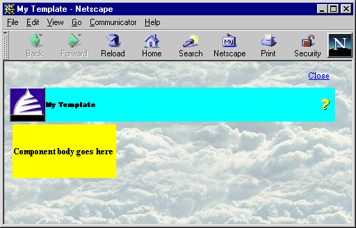 For example, you can choose an Image that will appear in the upper left corner of the template (capitol.gif) and a background image (clouds.gif) that will display behind the database portlet, as shown below.