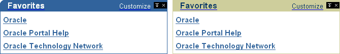 The following example shows the same portlet with different portlet header color, font, and style settings: