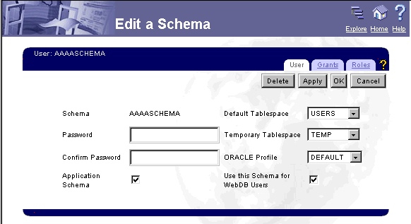 You can choose a new Default Tablespace. The default tablespace will be used to store any database objects or database portlets created in the schema.