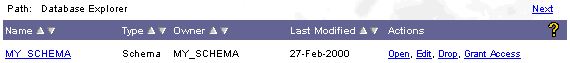 In the Oracle Portal Navigator, navigate to the list of schemas, which is under the Database tab.