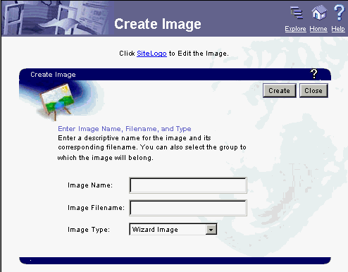 In the Image Name field, enter the name you want to give to the image. You can identify an image by any name you choose, for example, SiteLogo.