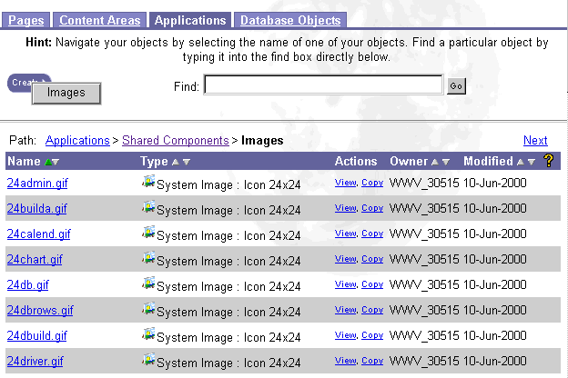 Choose an image type from the Image Type list, for example, Icon 24X24. The type you choose will display in the Type column of the Oracle Portal Navigator.