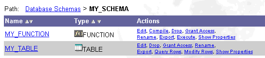 Note To find an object, you can also enter the name of the database object in the Find field at the top of the page and click Go.