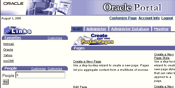 To build the above example, you first create the provider that will contain the individual database portlets. Then you open the provider and use the Create function in the Navigator to build the database portlets and tie them together with the link. Any database portlet (except Frame Drivers, Links and Lists of Values) that you create can be made accessible to Oracle Portal users as a portlet provider.